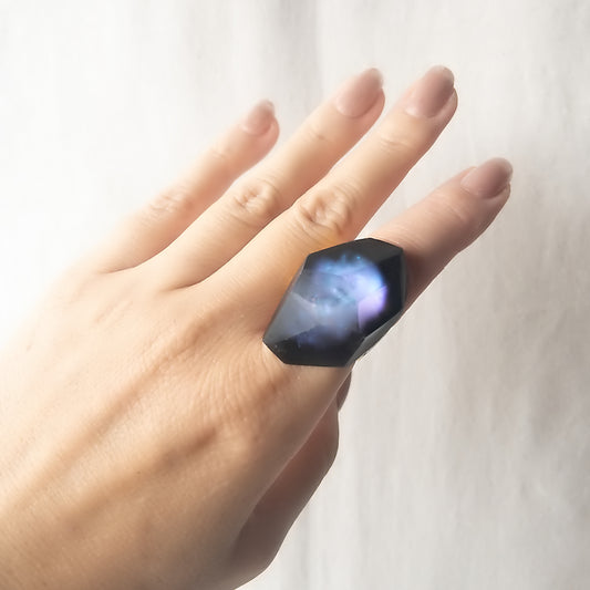Frames volume ring /crystals/ Night on the Galactic Railroad deep blue⇄deep purple 5-a/silver925