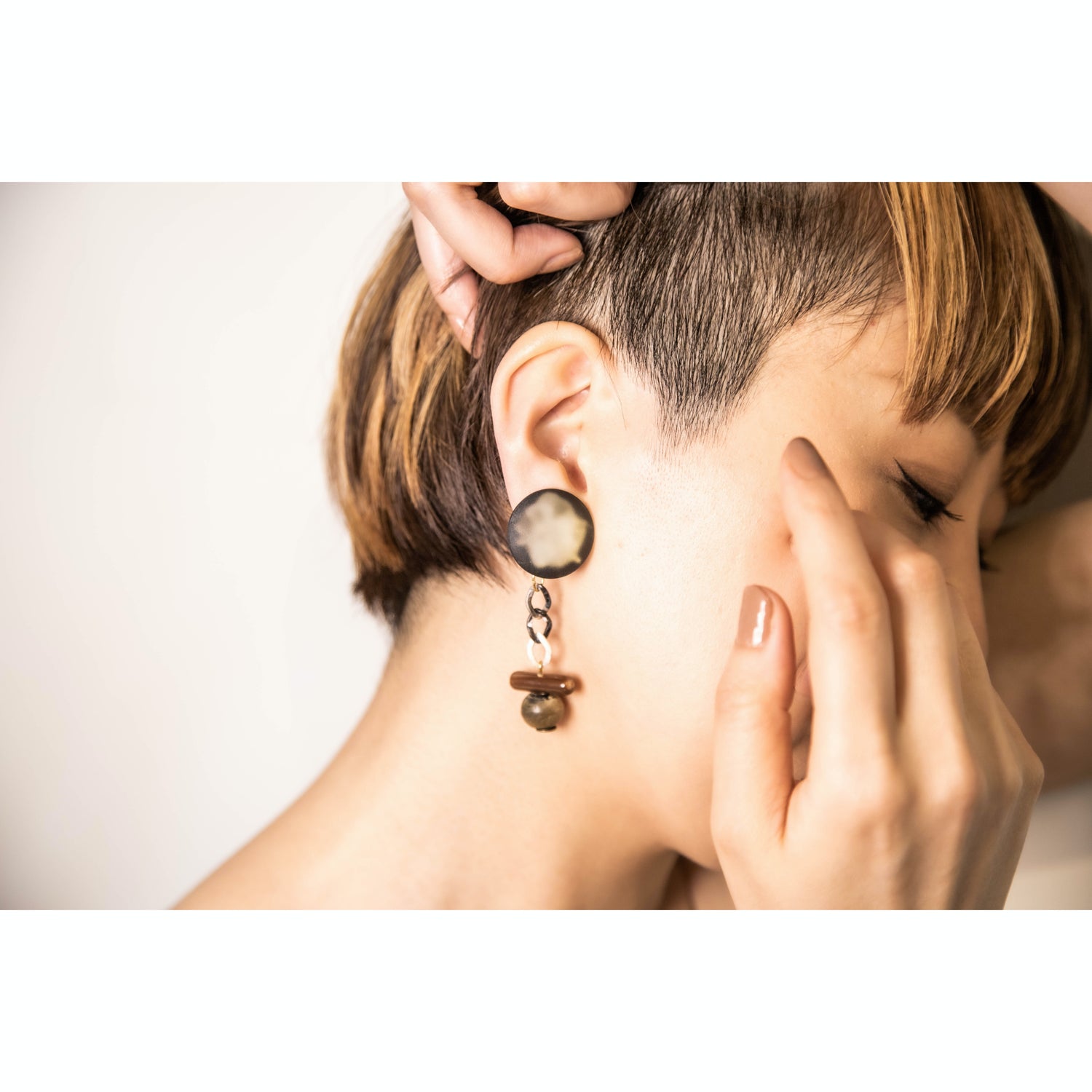 Galaxy 2way Earrings / Moon / Cold Moon Short