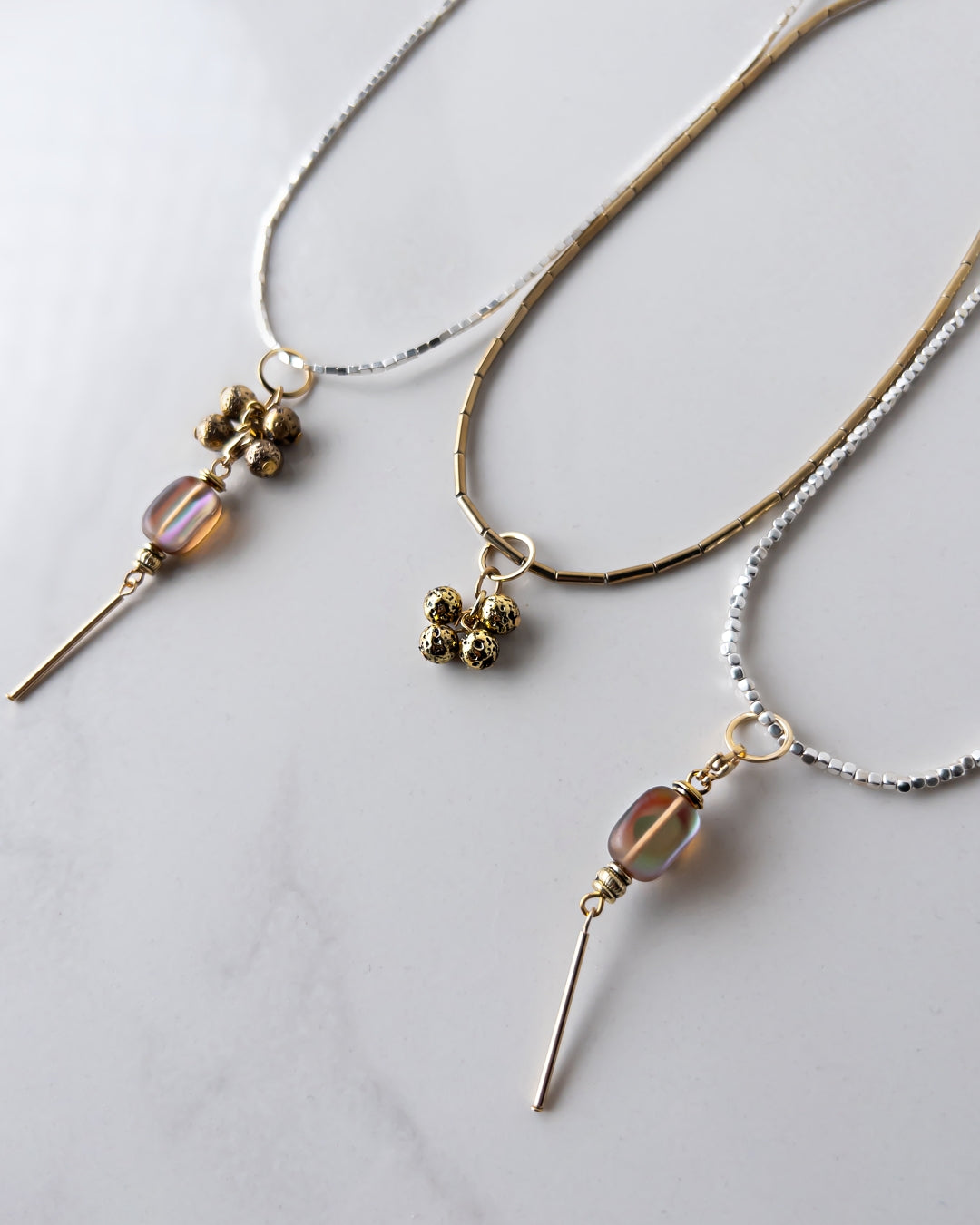 チャーム中のカニカン(引き輪)が取り外し可能。足したり外したりアシンメトリーにしたり。2way、3way以上のマルチウェイで自由に楽しめます。