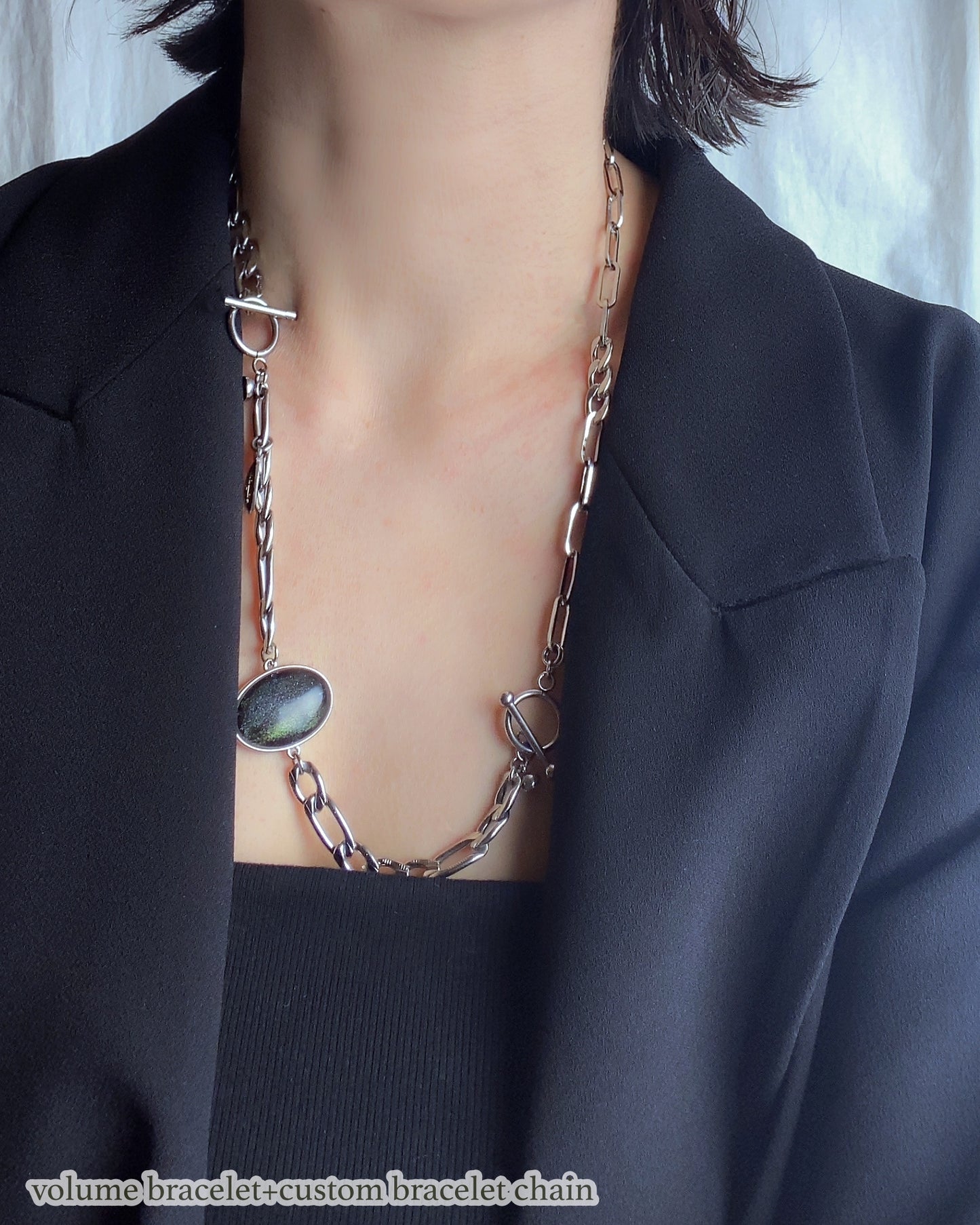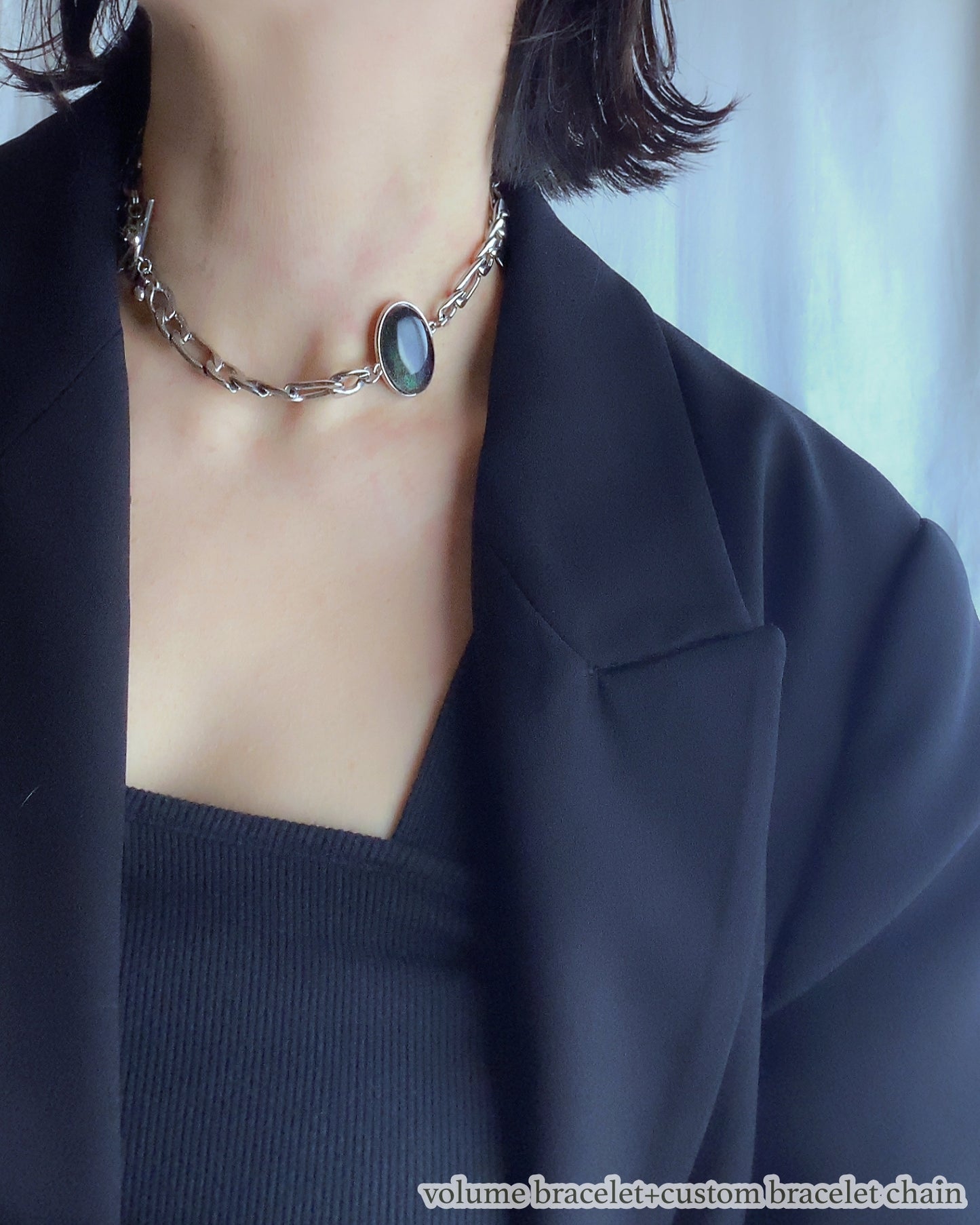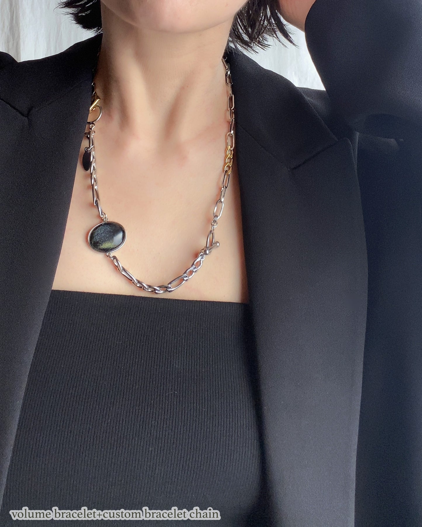 別売りの着せ替えブレスレットチェーンを合わせるとチョーカーやロングネックレスにもなります。