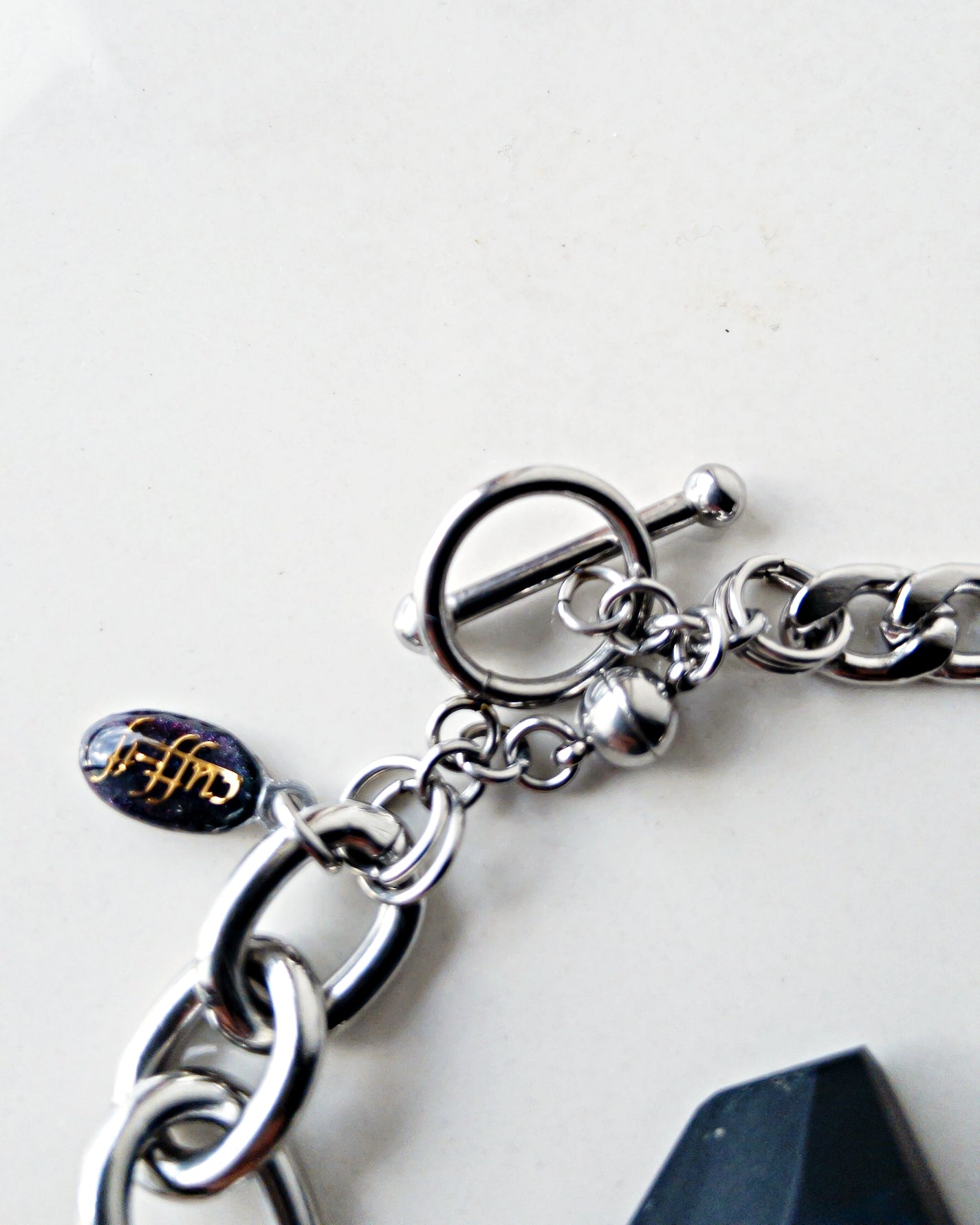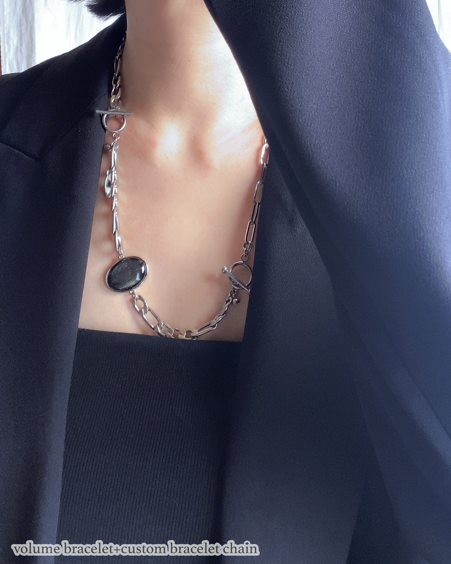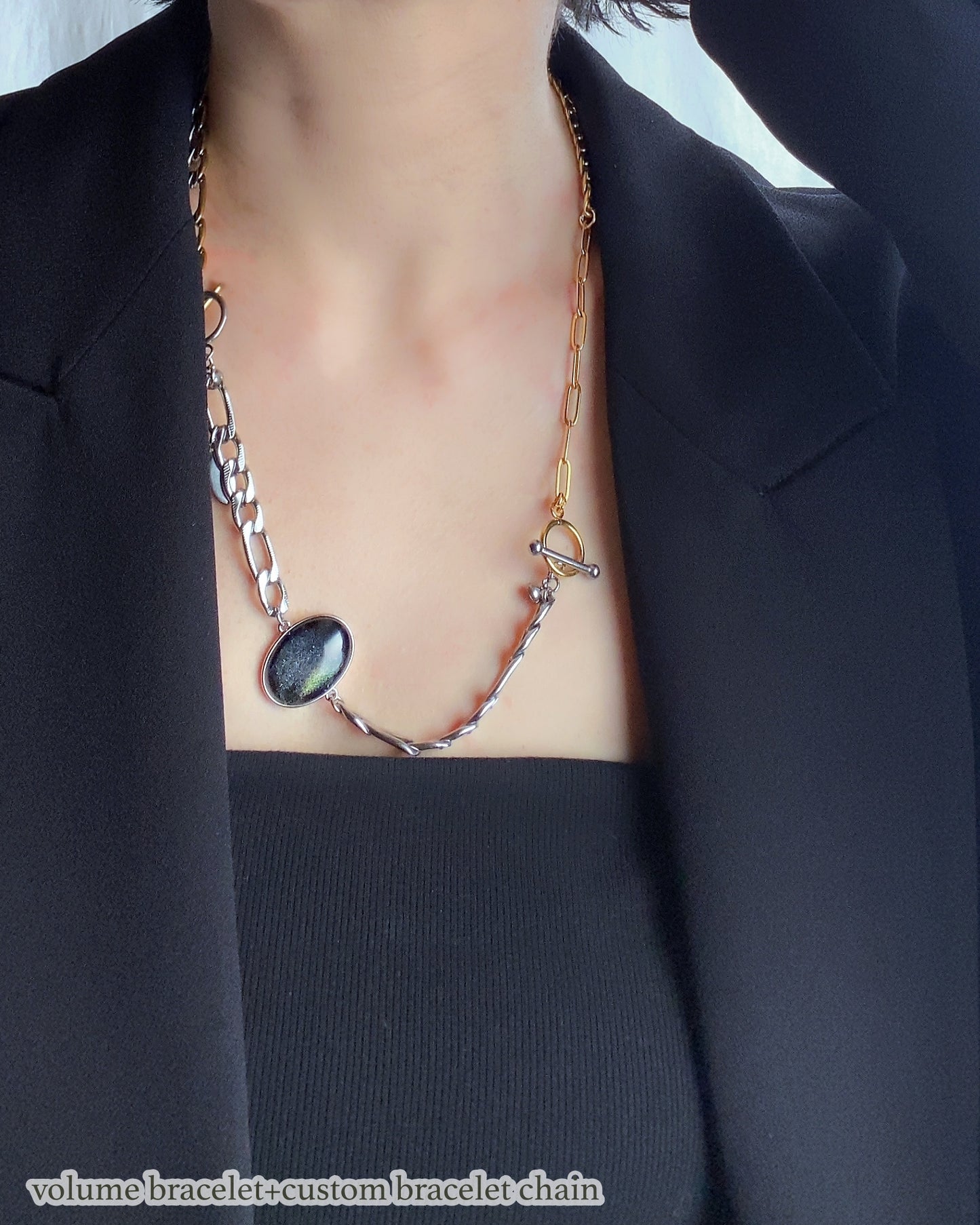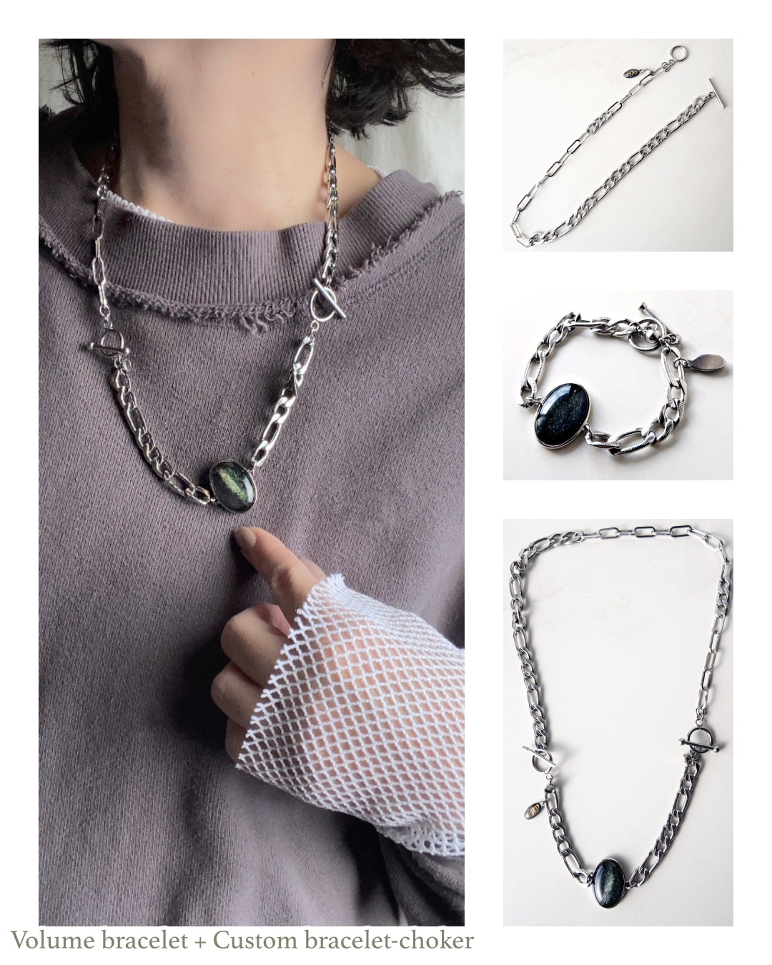 別売りの着せ替えブレスレットチェーンを合わせるとチョーカーやロングネックレスにもなります。