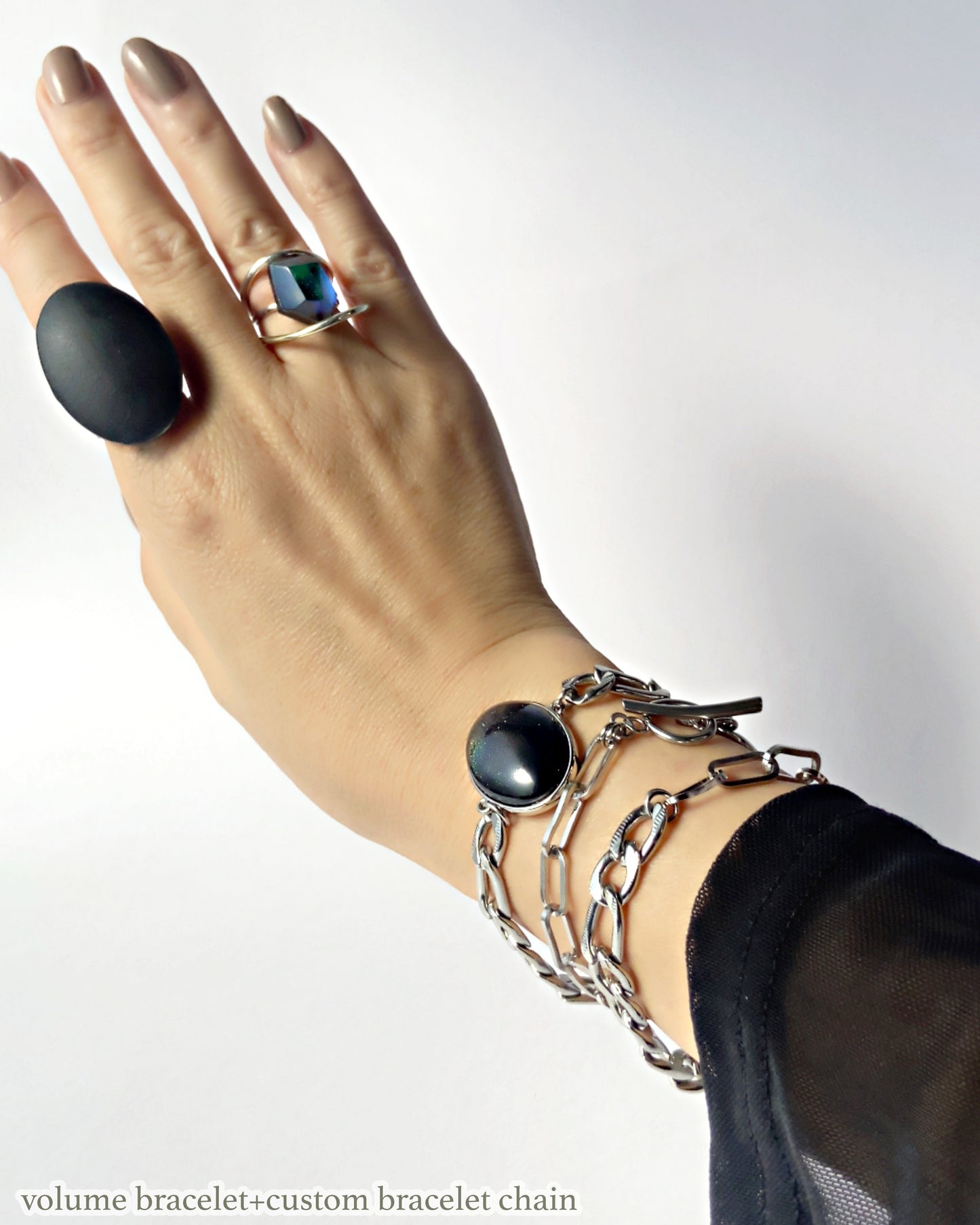 cuff-if初期から人気の ブレスレットは空想石をはめ込む台座まで完全オリジナル。